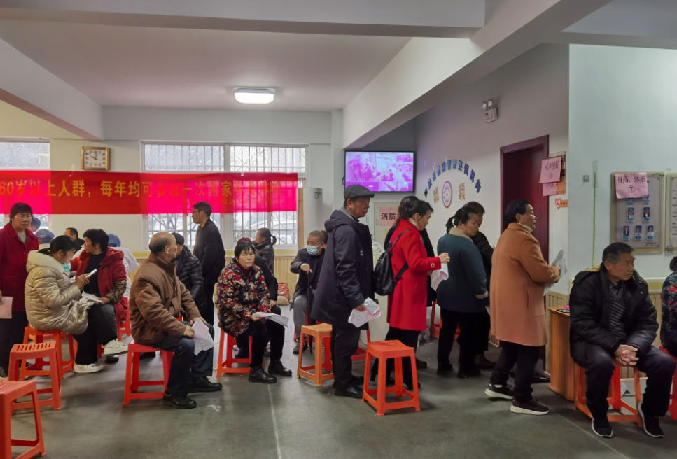 体检室内,医疗团队为前来体检的老年人开展检查,并针对老人们平时的生活习惯提出相应建议。本次体检包括常规体格检查、血压、血糖、血脂、肝肾功能、心电图、彩超等项目,同时根据检查结果对老年人的健康状况进行评估,建立个人健康档案,提供医疗咨询、回访、中医药健康管理等服务,让老年人在家门口有“医”靠。
