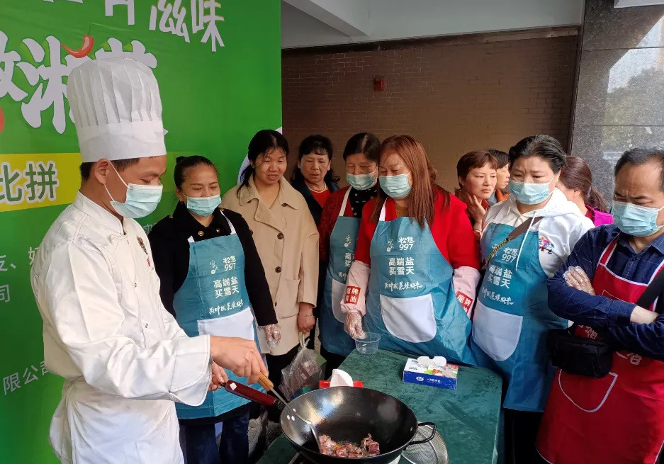 比赛场上,“炒锅里的战争”上演。倒油、放菜、翻炒、放调料……选手们将每一个步骤做得娴熟而自然。不一会儿,香味扑鼻而来,惹得附近居民都闻着香味来观摩,热闹非凡。一道道精心烹饪、造型别致的菜肴令人赞不绝口。