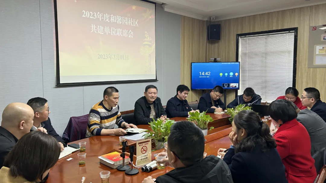为促进共驻共建工作,实现“资源共享、优势互补”,3月1日下午,和馨园社区召开2023年度共建单位联席工作会议,社区党总支支委委员及13家共建单位支部书记、党建专干参加会议。
