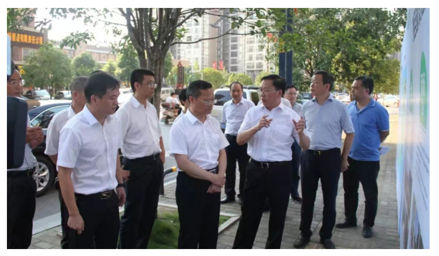 原长沙市市长胡忠雄、市委副书记、湖南湘江新区(长沙高新区)党工委书记、岳麓区委书记谭勇一行调研和馨园社区“十五分钟生活圈”建设情况。