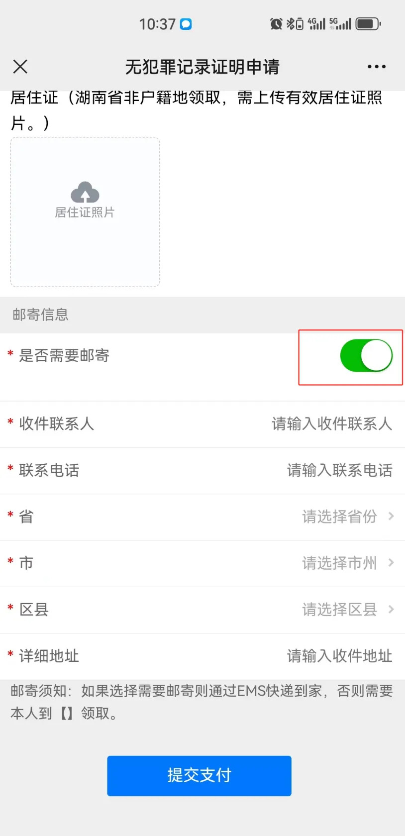 1、需要邮寄的,请点击选择【是否需要邮寄】,填写收件信息并向EMS快递提交支付。