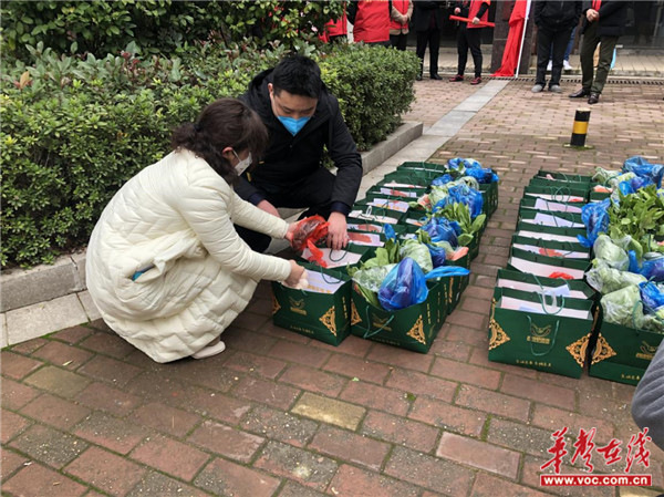 华声在线2月10日讯(通讯员 肖伟)2月10日上午,长沙市高新区麓谷街道和馨园社区联合辖区爱心企业笑帮手餐饮公司开展“病毒无情,和馨有爱,笑帮手助力勇战疫情”捐赠活动,为50户困难户免费赠送肉蛋蔬菜等生活必需品,并表示隔天送一次至疫情结束。