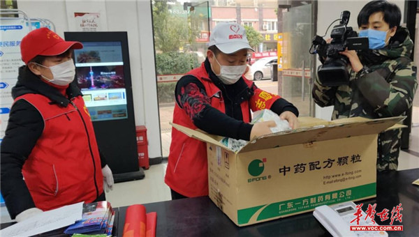 陈治国给社区工作人员发抗病毒口服液