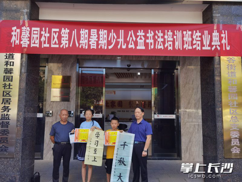 长沙晚报掌上长沙8月4日讯(通讯员 姜丹)8月4日,麓谷街道和馨园社区馨香书院第八期少儿公益书法培训班举行了结业仪式。