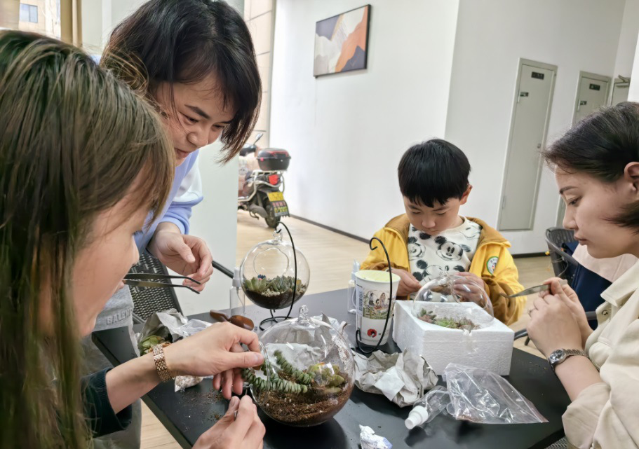新枫社区妇联组织辖区妇女代表30余人,开展妇女节创意微景观活动,借用花草来展现妇女同胞们的高雅情怀,激发创作热情。