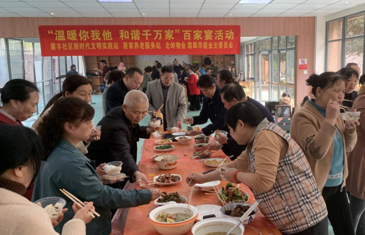麓丰社区在新时代文明实践站、翡翠华庭居家养老服务站举行“和谐邻里百家宴”活动。活动不指定食材不设定菜系,让居民尽情参与其中,拿出自己的掌勺本领,精心制作美味佳肴互相分享品尝。