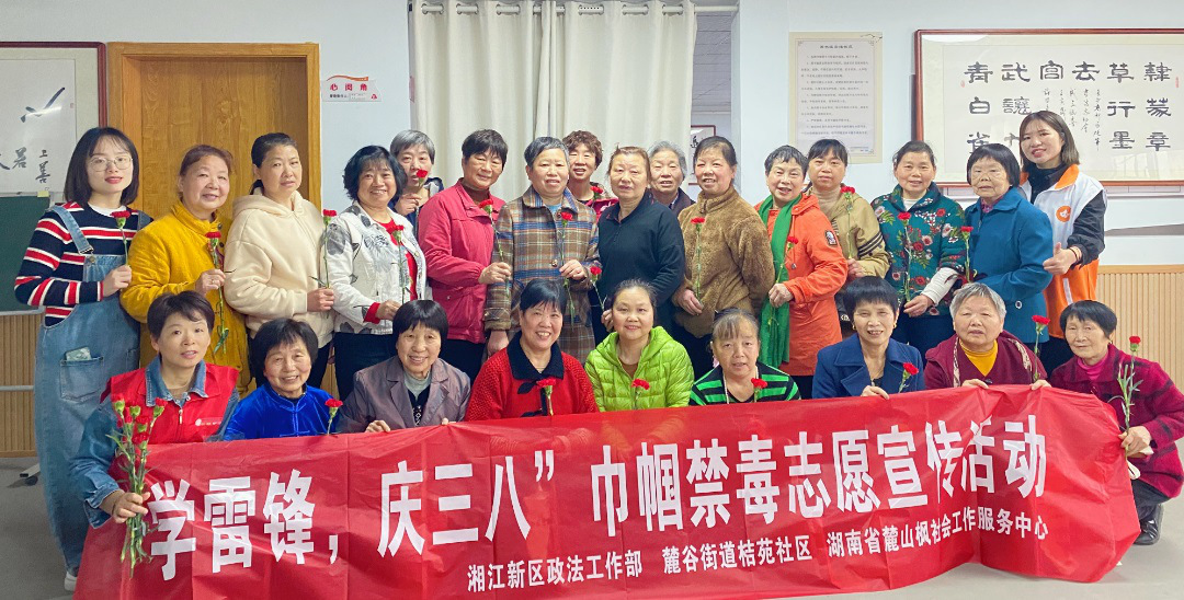 弘扬雷锋精神,展现巾帼风采。在湘江新区政法工作部的指导下,桔苑社区携手湖南省麓山枫社会工作服务中心,开展“学雷锋·庆三八”宣传主题特色活动。通过巾帼志愿者走街上户式的宣传,将普法、禁毒、垃圾分类等知识带入寻常百姓家,共分发各类宣传册100余份。