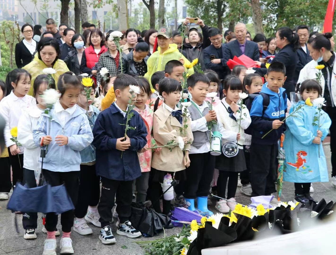 祭扫的人群中,有和馨园社区的党员代表、特巡警支队高新特巡警大队的巡警们、长郡麓谷中学的中学生们,来自高新天乐幼儿园中班的孩子们,还有东方红建设集团、中冶长天、博世科环保等重点企业的党员代表们。他们早早来到雷锋父母墓碑前,庄严列队、肃立默哀,向墓碑行三鞠躬礼,并依次敬献鲜花。